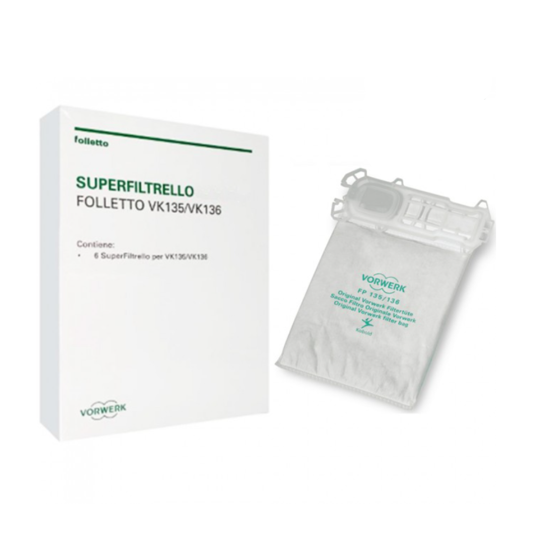 SACCHETTI ORIGINALI VK135/136 SUPER FILTRELLO VORWERK FOLLETTO