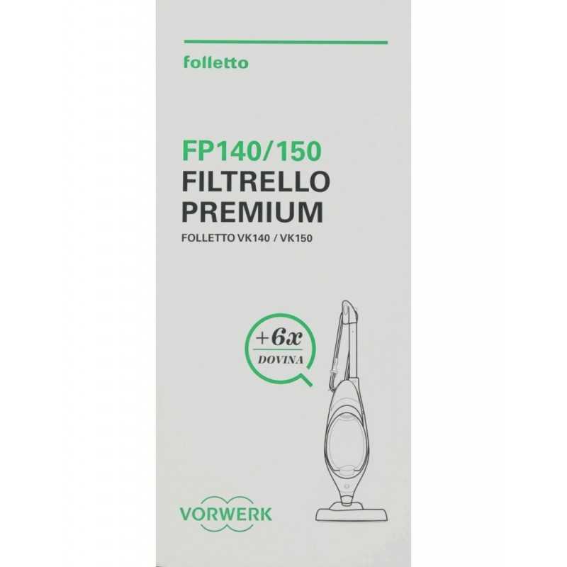 SACCHETTI ORIGINALI FP140/150 + 6 DOVINA FILTRELLO PREMIUM VORWERK FOLLETTO